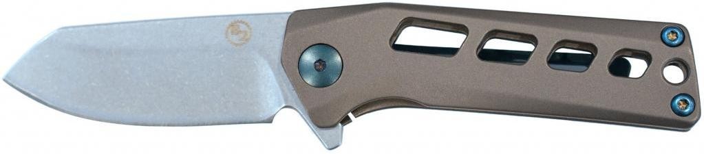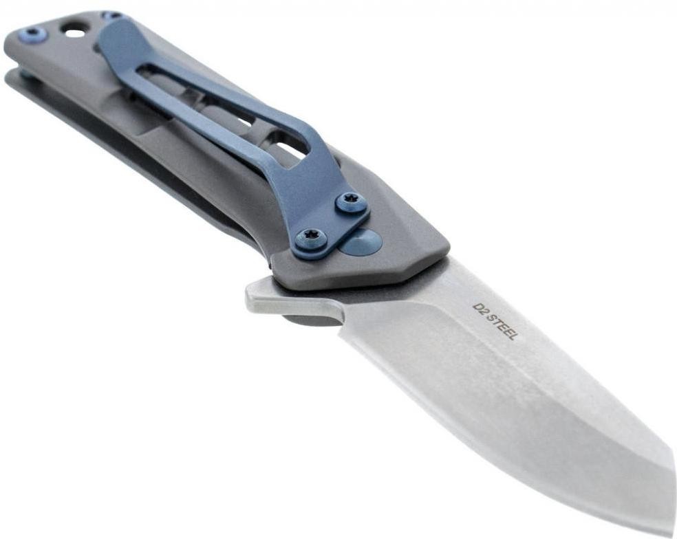 Тонкий цільностальний, але легкий повсякденний ніж з кліпсою для глибокого носіння. Гвинти і кліпса анодовані в контрастний колір. Відкривається ніж з фліпера і тримається у відкритому положенні замком типу Frame Lock .