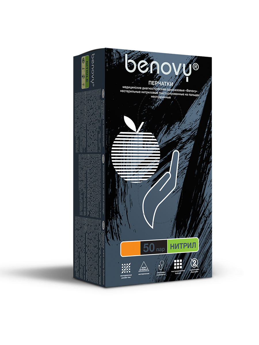 Перчатки медицинские Benovy, черные, нитриловые, 50 пар