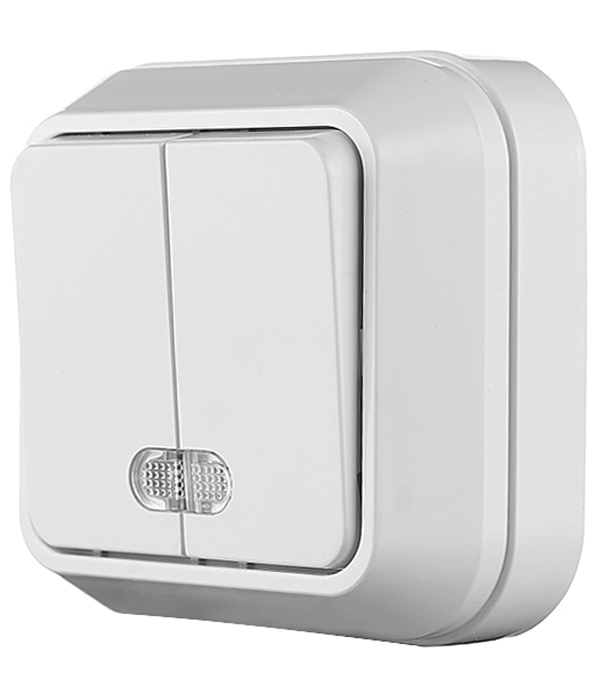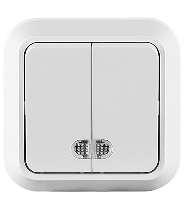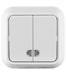 Выключатель двухклавишный Makel Mimoza о/у с подсветкой белый