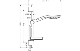 - Глубина, см Расстояние от стены до самой дальней точки душевого гарнитура с учетом всех комплектующих элементов (душевой лейки, полки и т.д.). Глубина, см 34.4