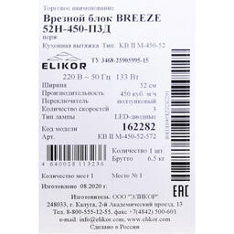 Вытяжка встраиваемая Elikor Breeze 52 см, нержавеющая сталь, цвет серебристый