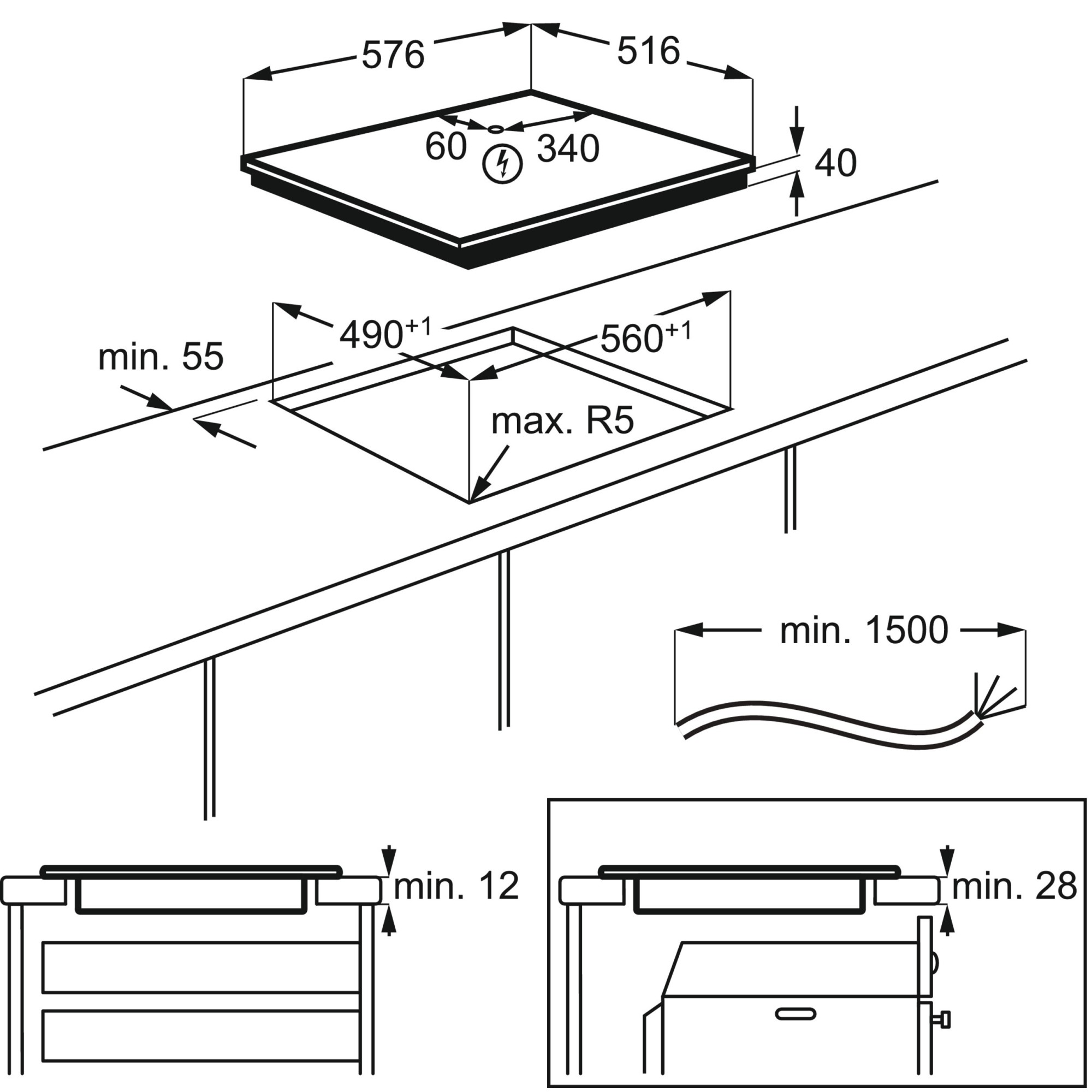 - Ширина встраивания (см) 56.0