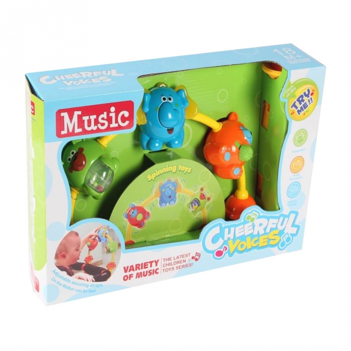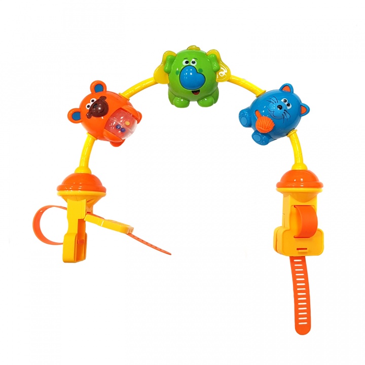 Музыкальная игрушка-дуга гарантирует любому малышу веселое путешествие! Просто прикрепите ее к ручке коляски с помощью двух регулируемых креплений, которые входят в комплект, и наслаждайтесь тем, как ребенок играет с ней во время прогулок.
