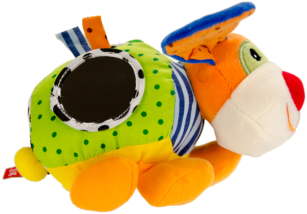 Игрушка обеспечивает всестороннее развитие малыша: яркие цвета способствуют развитию зрения. Голос собачки и шуршалки в ушках – слуха, зеркальце способствует ускорению социализации ребёнка, различные фактуры и детали развивают мелкую моторику и тактильное восприятие.