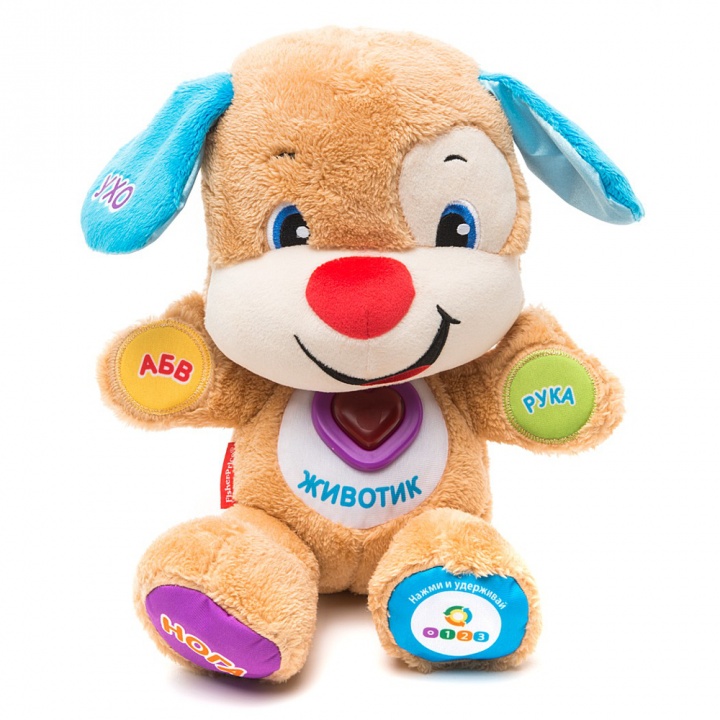 Милый щенок с разноцветными лапками, ушками и большим розовым носом – это мягкий надежный друг и учитель, который бесспорно станет любимой игрушкой вашего малыша. Каждый ребенок индивидуален и развивается в разном темпе, а умная технология Smart Stages , которой оснащен щенок, позволит самостоятельно выбирать подходящий уровень обучения для малыша.