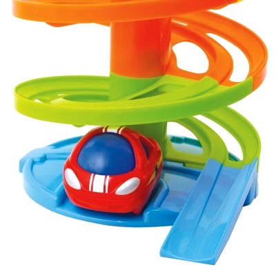 Спиралевидная парковка имеет 4 яруса сочных цветов. Ваш малыш будет с радостью запускать свою первую гоночную машинку и придумывать игровые сюжеты.