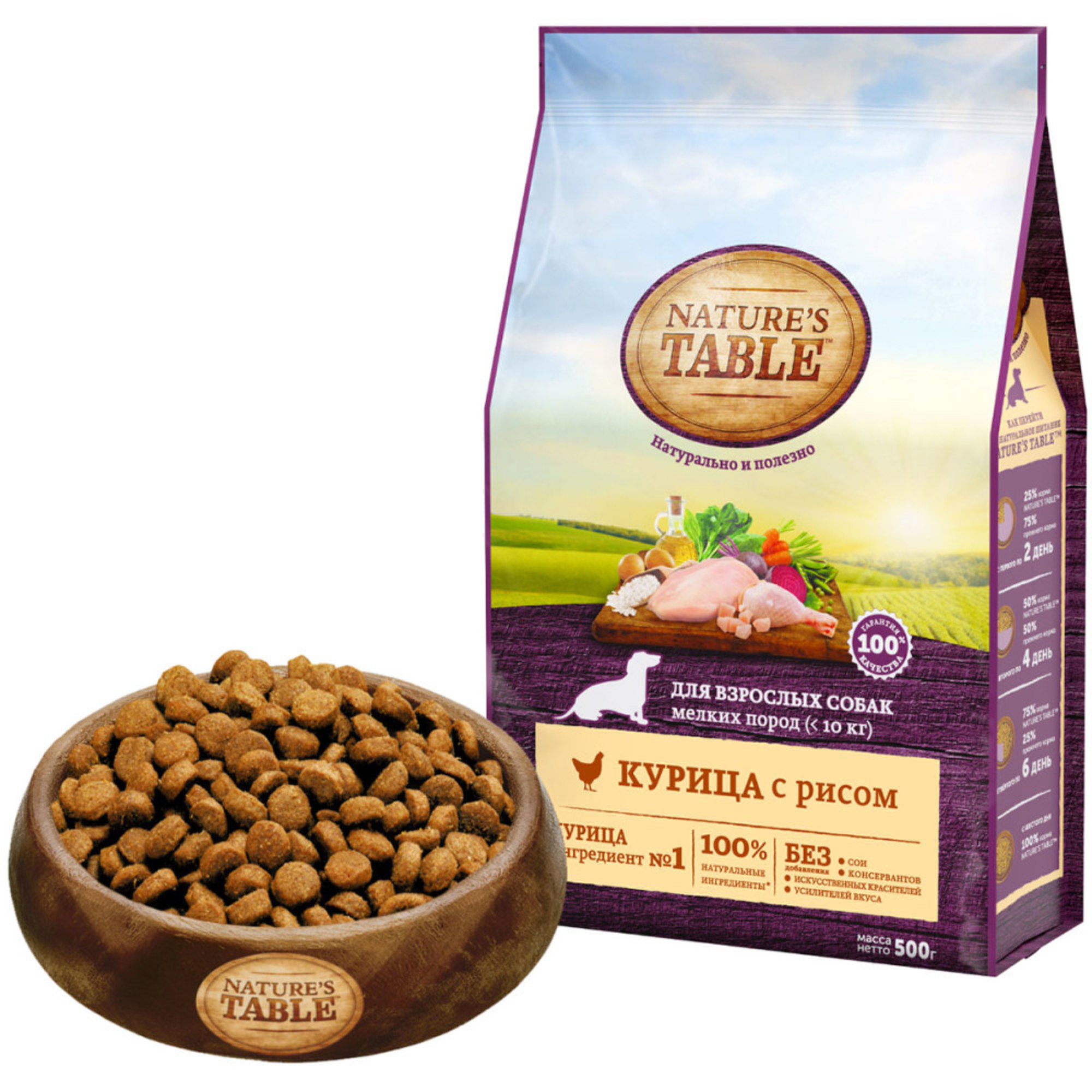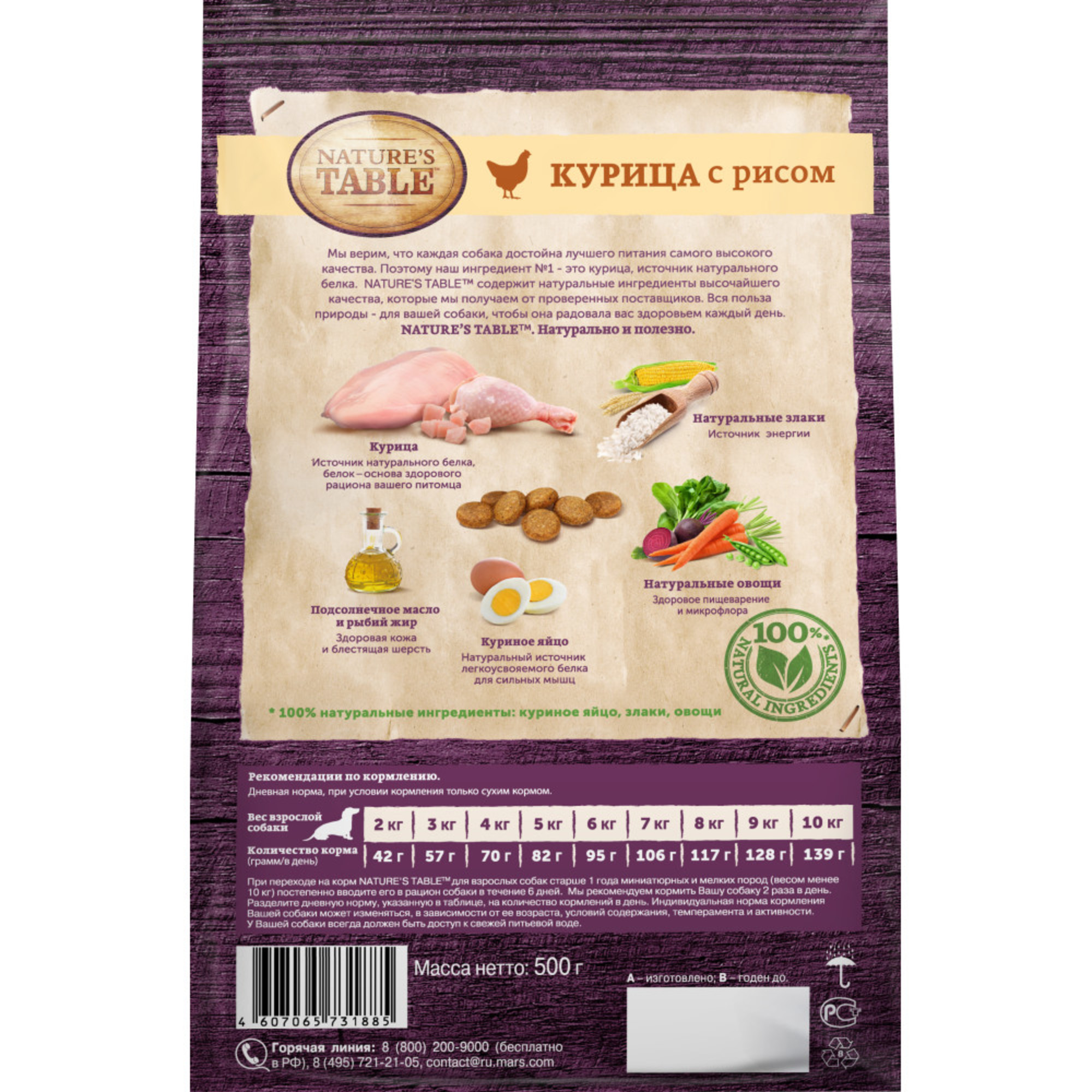 Сухой корм для взрослых собак мелких пород Nature’s Table Курица с рисом, 500 г