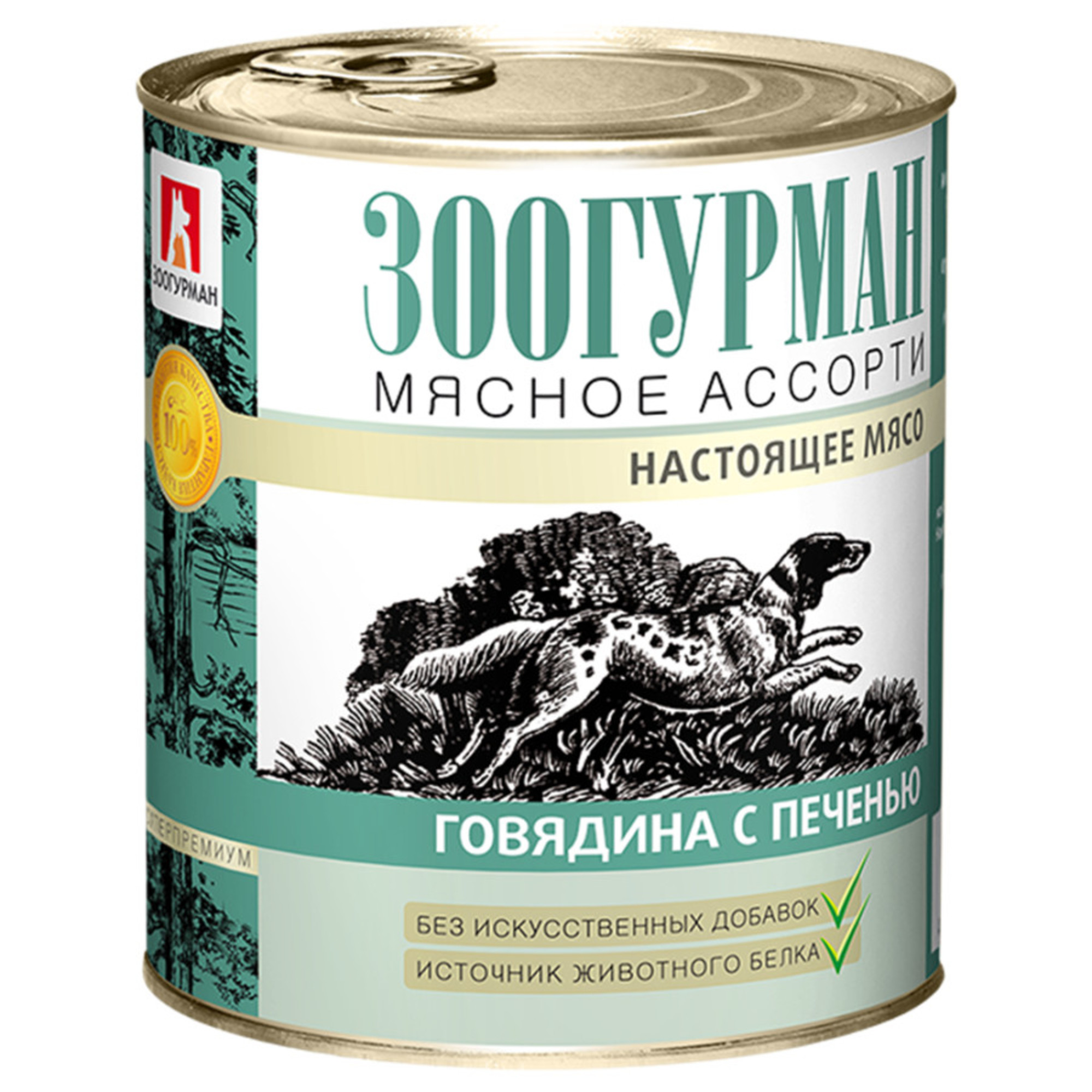 Влажный корм для собак Мясное ассорти «Зоогурман - Настоящее мясо», Говядина с печенью, 750г