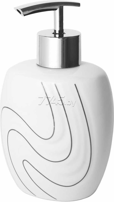 Дозатор для жидкого мыла BISK Wave (05975) выполнен из керамики и пластика, покрытого хромом. Цвет белый. Глянцевая поверхность с серебристым рисунком.