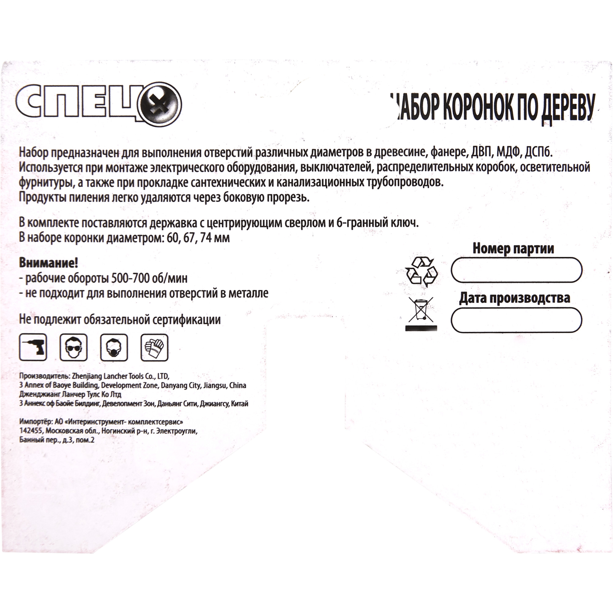 Набор коронок по дереву Спец, 60-74x30 мм, 3 шт.