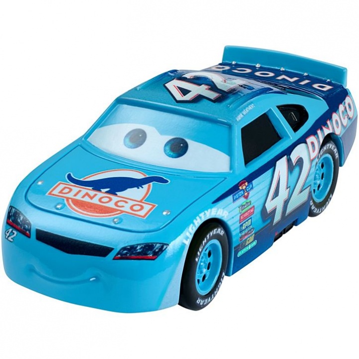Цвет корпуса - голубой, с перламутровыми переливами при солнечном свете, а образ спорткара завершают такие акценты как логотипы на боковых дверях и номер гонщика. Эффектный автомобиль с приветливым выражением.