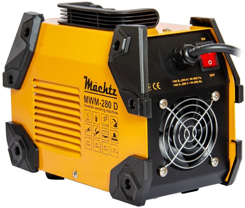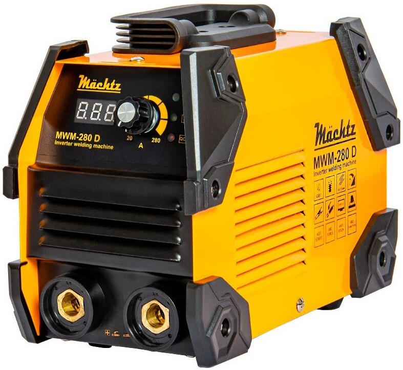 Сварочный аппарат инверторного типа Machtz MWM-280 D работает как для сложных сварочных задач, так и для простых. Отличается тем, что работает без кнопок включения, а от контакта электрода со свариваемой поверхностью. Подходит для работы со всеми видами электродов, даже с алюминиевыми. Имеет прочный, ударостойкий металлический корпус.