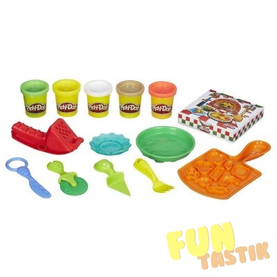 В наборе вы найдете 5 баночек разноцветного пластилина Плей-До (общим весом 280гр.) и массу инструментов и посуды для приготовления пиццы.