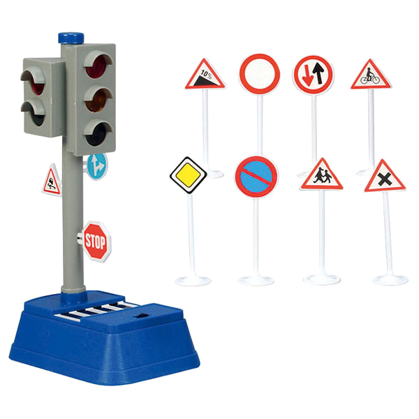 В наборе: светофор - 1 шт., дорожные знаки - 8 шт.