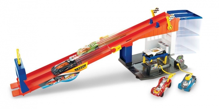 В гараже можно не только оставлять свою машинку на "ночлег", но и устраивать самые настоящие соревнования! Гараж оборудован специальным гоночным треком для двух машинок, с финишной прямой и стартом. Дождитесь сигнала и стартуйте! А когда машинка устала или нужно подзарядиться, то всегда можно воспользоваться заправочной станцией.