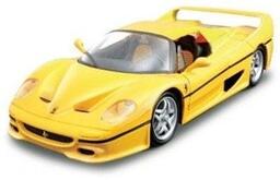 У Феррари F50 литой металлический корпус желтого цвета. Двери автомобиля открываются.