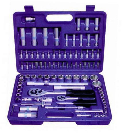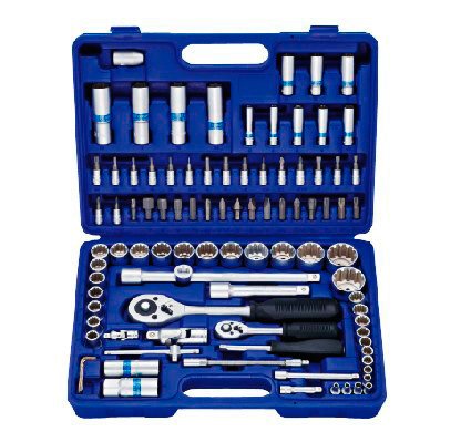 Универсальный набор инструментов. Количество предметов в наборе: 94. Состав набора: головки торцевые 1/2": 10-24, 27, 30, 32 мм; головки торцевые глубокие 1/2": 14, 15, 17, 19 мм; головки свечные 1/2" 16, 21 мм; удлинители 125, 250 мм; переходник 1/2"; трещотка 24-зубцовая 1/2", 1/4"; головки торцевые 1/4": 4, 4.5, 5, 5.5, 6-14 мм; головки торцевые глубокие 1/4": 6-13 мм; удлинители 50, 100 мм 1/4"; переходник 1/4"; Т-вороток 1/4"; вороток удлинитель 1/4"; переходник 1/2"(М)х3/8"(F); удлинитель гибкий; переходник для бит; кардан-переходник 1/2" (F) х 5/16" (Hex Drive); биты 1/4" 17 предметов : насадка шестигранная: 3-6 мм; насадка шлицевая: 4, 5.5, 7 мм; насадка крестовая #1, #2; Pozi: PZ1, PZ2; насадка звездочка Т8, T10, T15, T20, T25, T30; биты 15 предметов: насадка шестигранная 8, 10, 12, 14 мм; насадка шлицевая 8, 10, 12 мм; насадка Pozi: PZ3, PZ4; насадка звездочка T40, T45, T50, T55; насадка крестовая #3, #4; ключи шестигранные Г-образные 1, 2, 2.5 мм..