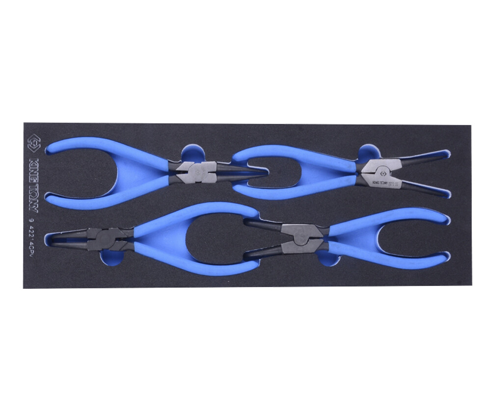 Удобный для хранения ложемент включает в себя 4 съемника стопорных колец. Мастеру с помощью них удобно работать даже в стесненных, труднодоступных местах. Материал изготовления рабочей части – высокопрочная инструментальная сталь. Ручки выполнены из прорезиненного пропилена, удобны для захвата.