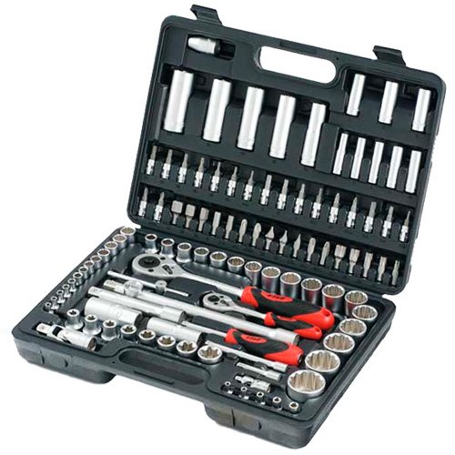 - Наличие в наборе Шестигранные ключи, Удлинители 1/4", Удлинители 1/2", Трещотка 1/4", Трещотка 1/2", Торцевые головки 1/4", Торцевые головки 1/2", Отвертка под биты, Головки свечные, Биты