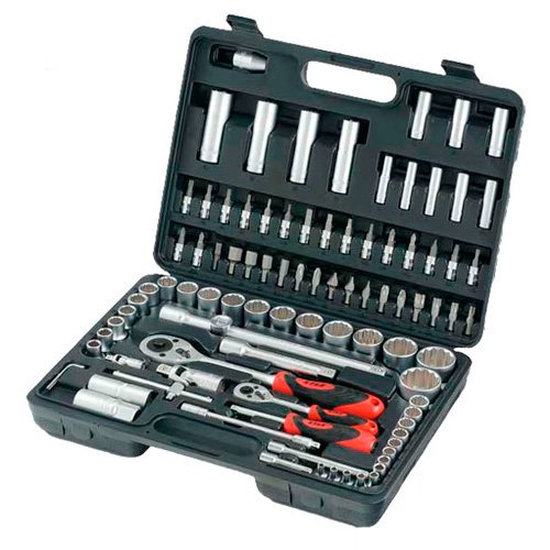 - Наличие в наборе Шестигранные ключи, Удлинители 1/4", Удлинители 1/2", Трещотка 1/4", Трещотка 1/2", Торцевые головки 1/4", Торцевые головки 1/2", Отвертка под биты, Головки свечные, Биты