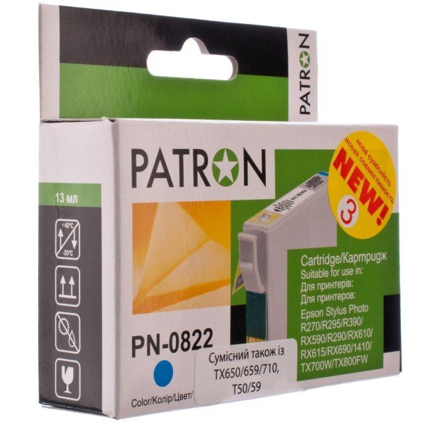 Картридж струйный Patron для Epson T08124, PN-0822, №3 Cyan (CI-EPS-T08124-C3-PN)