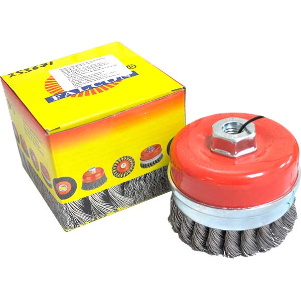 Щетка чашечная проволочная FALCON 50619702 используется для зачистки поверхностей и придания им шероховатости (удаление ржавчины, краски, заусенцев и грязи). Рабочая часть сделана из пучков стальной проволоки. Диаметр — 80 мм, в посадочном отверстии присутствует резьба М14.