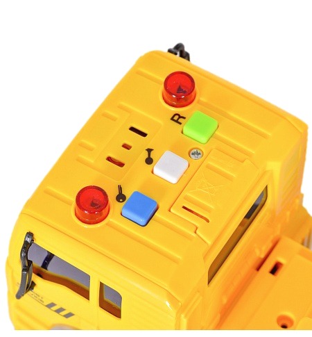 Машинка изготовлена из прочной пластмассы желтого цвета с нанесенными на нее знаками. На крыше автомобиля находятся сигнальные огоньки, а элементы автомобиля подвижны. Особенность машинки - резиновые колеса, обеспечивающие отличное сцепление с любыми поверхностями.