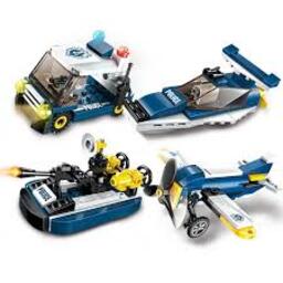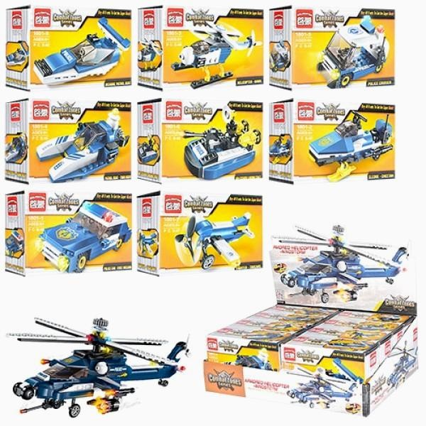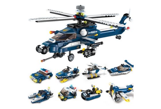 У наборов конструктор " Спецназ. Техника " - в ассортименте 8 наборов "2 в 1". Каждый набор представляет собой детали конструктора из которого можно собрать полицейское транспортное средство или одну из деталей большого полицейского вертолета. Если собрать все наборы, то из них можно построить большой полицейский вертолет. Все детали легко и прочно крепятся друг с другом. Кроме этого. наборы можно объединять между собой, а детали взаимозаменяемы.