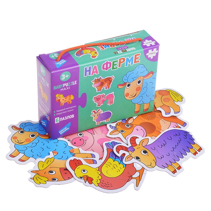 Большие яркие пазлы помогут малышу выучить обитателей фермы и запомнить их образы в простой игровой форме.