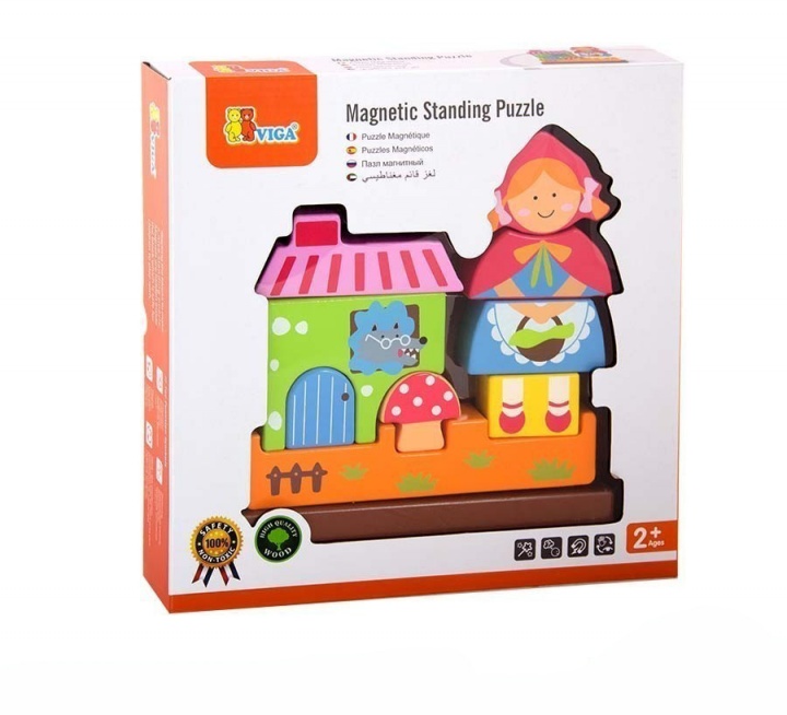 Яркие и красочные магнитные кубики-пазлы "Красная шапочка" имеют вертикальн ый принцип сборки. Каждый элемент скрывает в себе магнит, что позволяет блокам более надежно держаться друг на друге.
