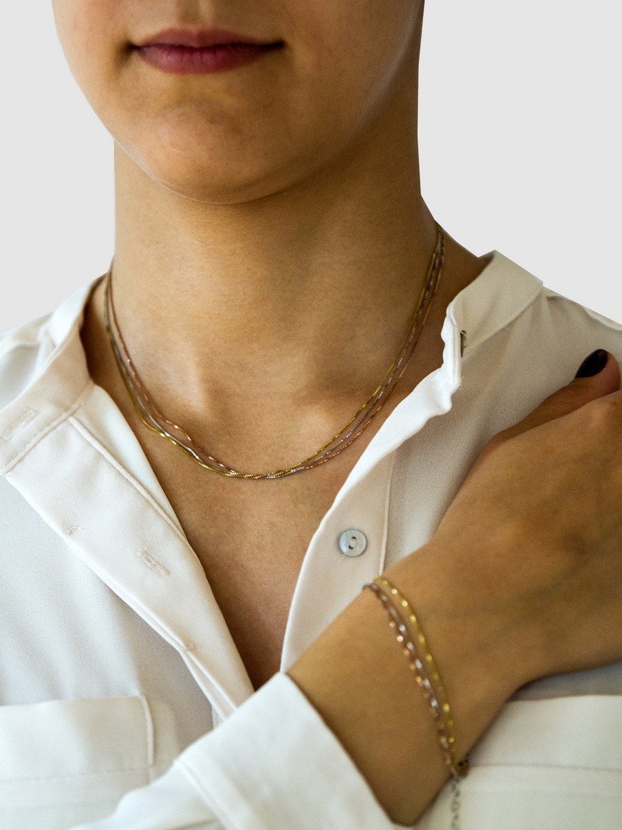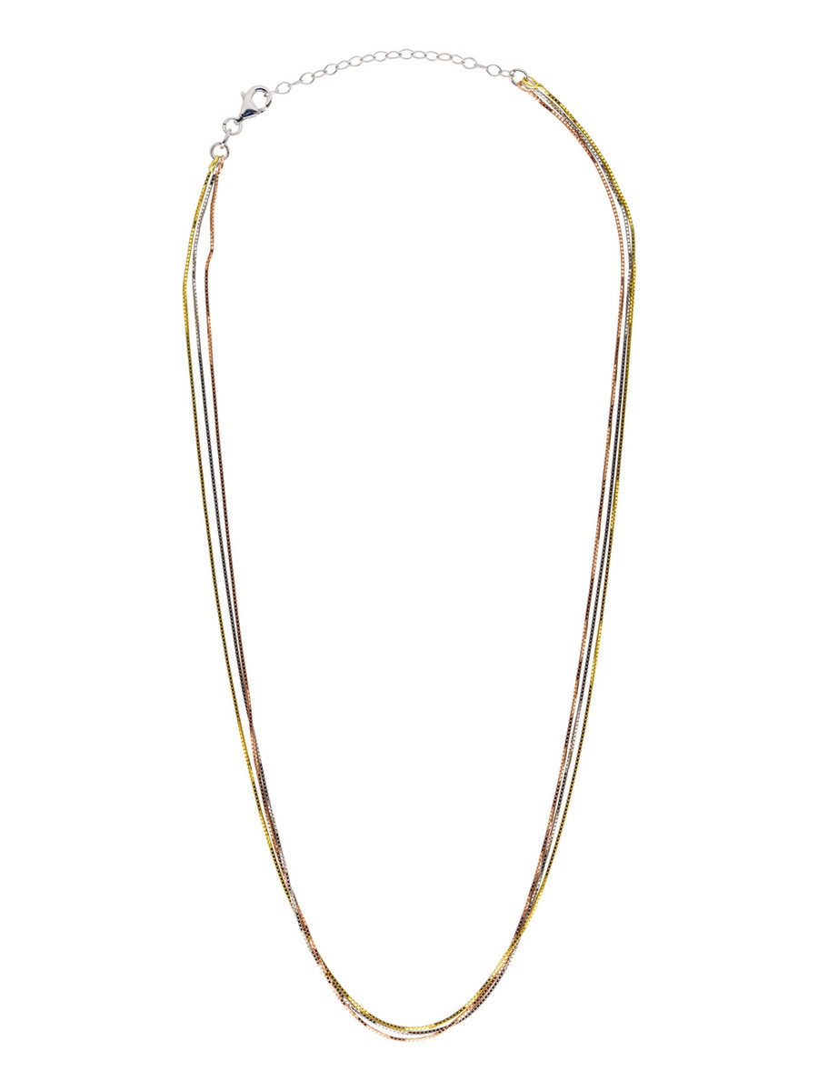 Цепочка Серебряная Венеция Коробочка (венецианская) облегченная 3 ряда 3 цвета, серебро 925