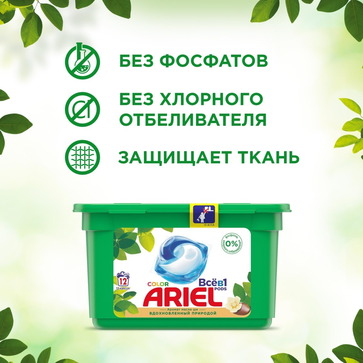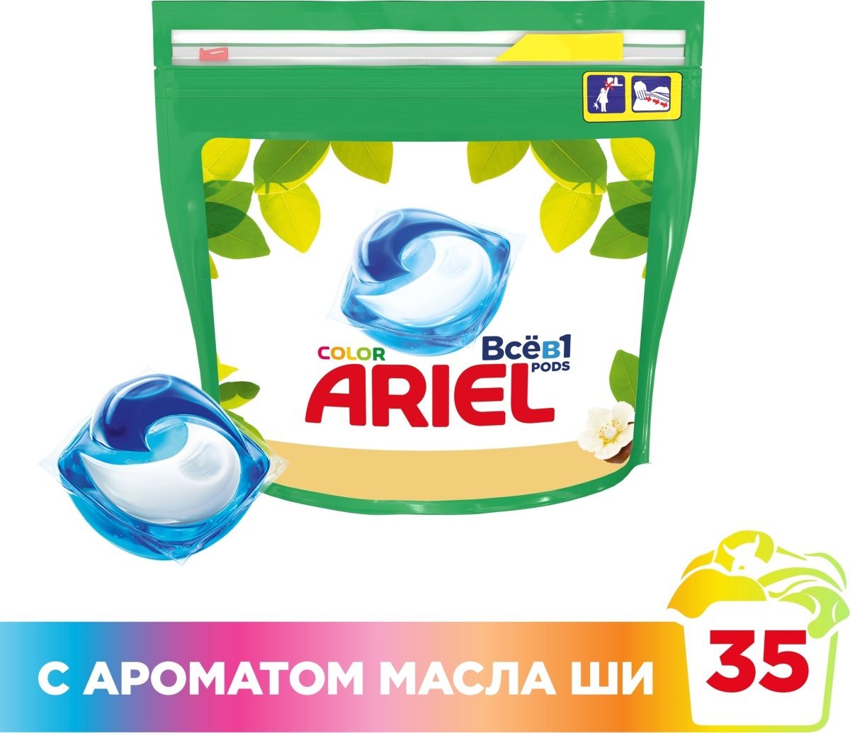 Капсулы для стирки Ariel Pods Все-в-1 Масло Ши Аромат Природы, 35 шт