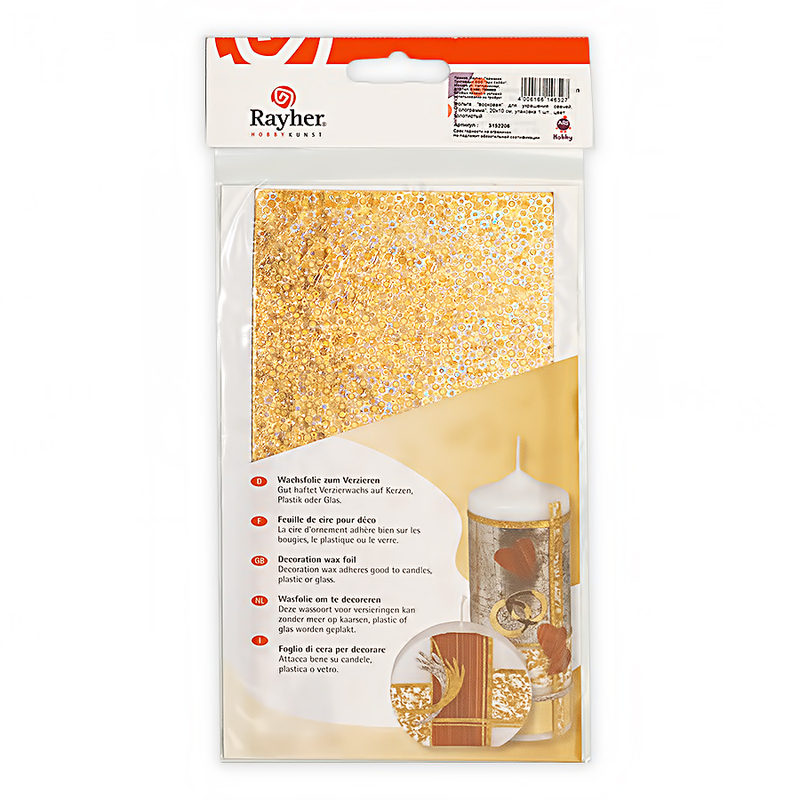 Фольга "восковая" для украшения свечей, "Голограмма", 20х10 см, упаковка 1 шт., цвет золотистый 3152206