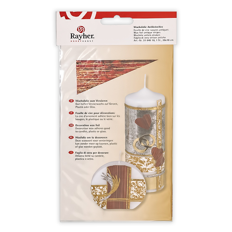 Фольга "восковая", Античные полоски, 20x10 см, упаковка 1 шт., цвет красный 3104018