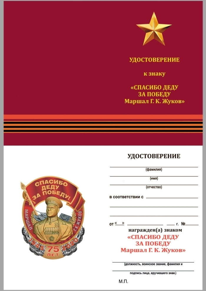 Знак Маршал Жуков "Спасибо деду за Победу!"