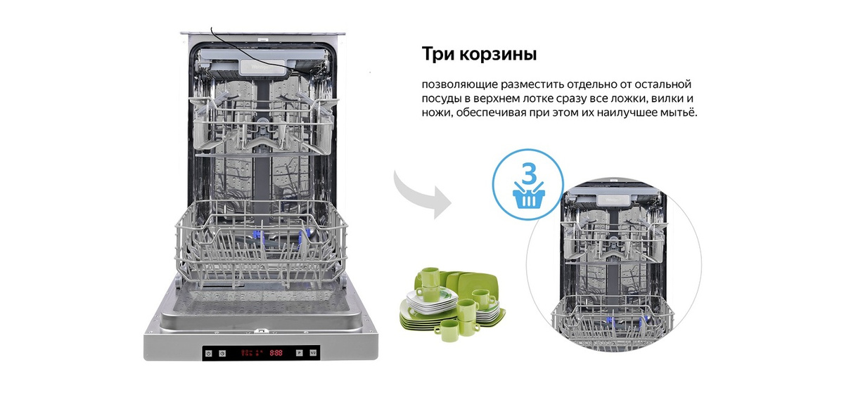 • Вид посудомоечной машины Узкая (45 см)
