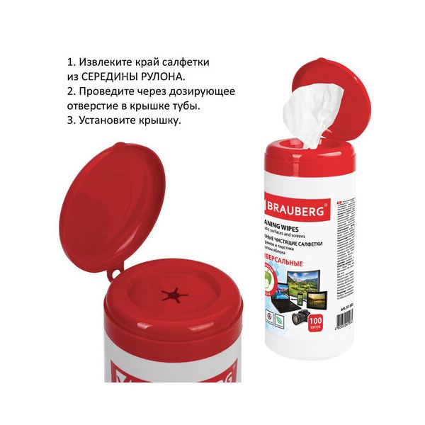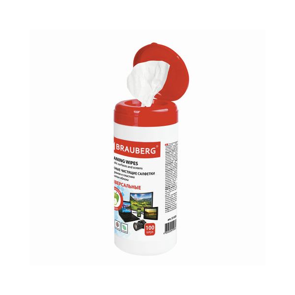 Описание товара Салфетки BRAUBERG для оптики и пластика с ароматом ЯБЛОКО туба 100 шт влажные