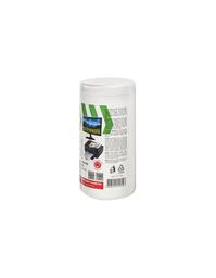 Они имеют размер 130х150 мм и выполнены из нетканного материла на целлюлозной основе плотностью 25 г/м2. Упакованы в пластиковую тубу по 100 штук. Пропитывающий состав: вода более 30%, н-пропанол 5% или более, но менее 15%, неионогенные ПАВ менее 5%, консервант менее 5%, антистатический компонент менее 5%. Перед применением необходимо ознакомиться с инструкцией производителя устройства, которое подвергается очистке.