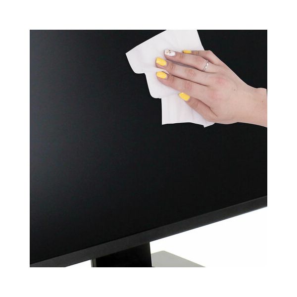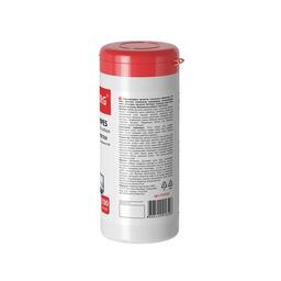 Они имеют размер 130х170 мм и выполнены из нетканного материла на целлюлозной основе плотностью 35 г/м2. Упакованы в пластиковую тубу по 100 штук. Пропитывающий состав: вода, неионогенные ПАВ менее 5%, консервант, антистатический компонент.