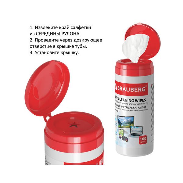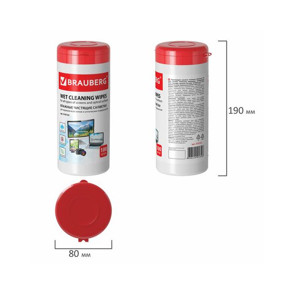 В наличии 360 РСалфетки BRAUBERG для всех типов оптики100 шт влажные