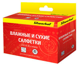 Описание товара Салфетки Silwerhof для планшетов и смартфонов коробка 10шт сухих+10шт влажных