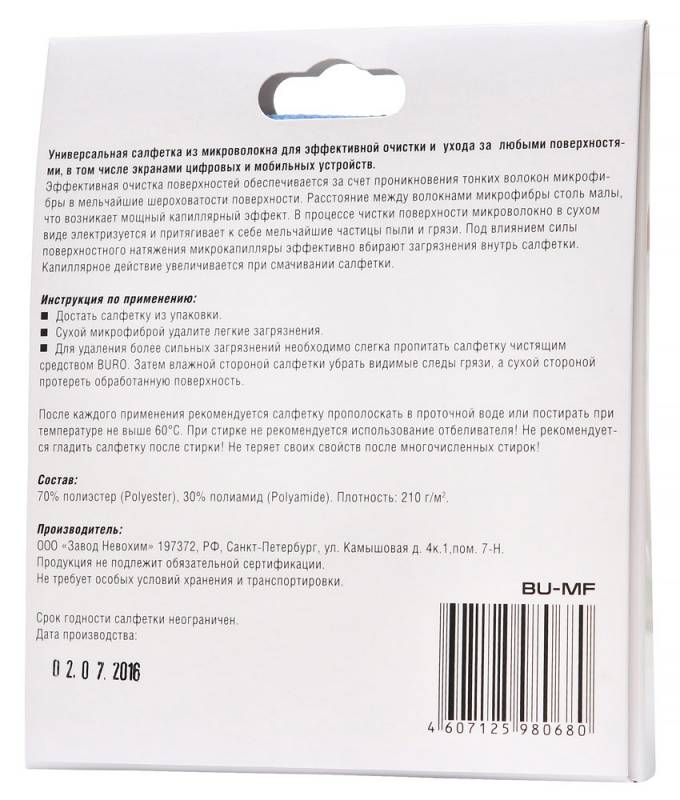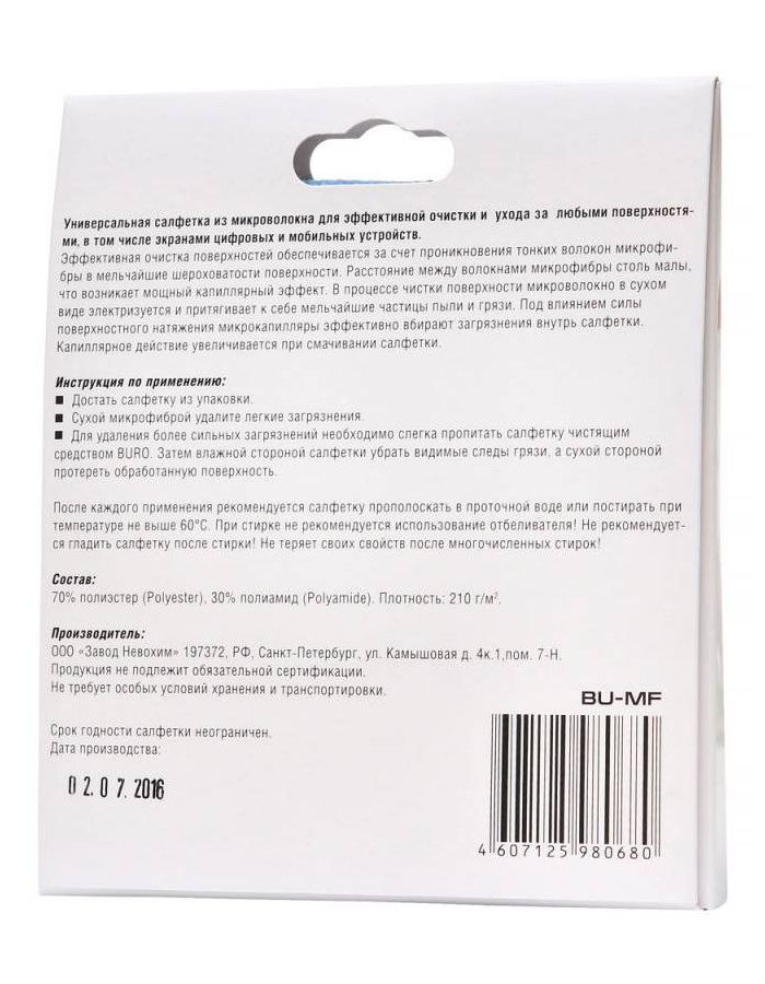 Описание товара Салфетка Buro BU-MF для удаления пыли коробка 1шт 25х25см