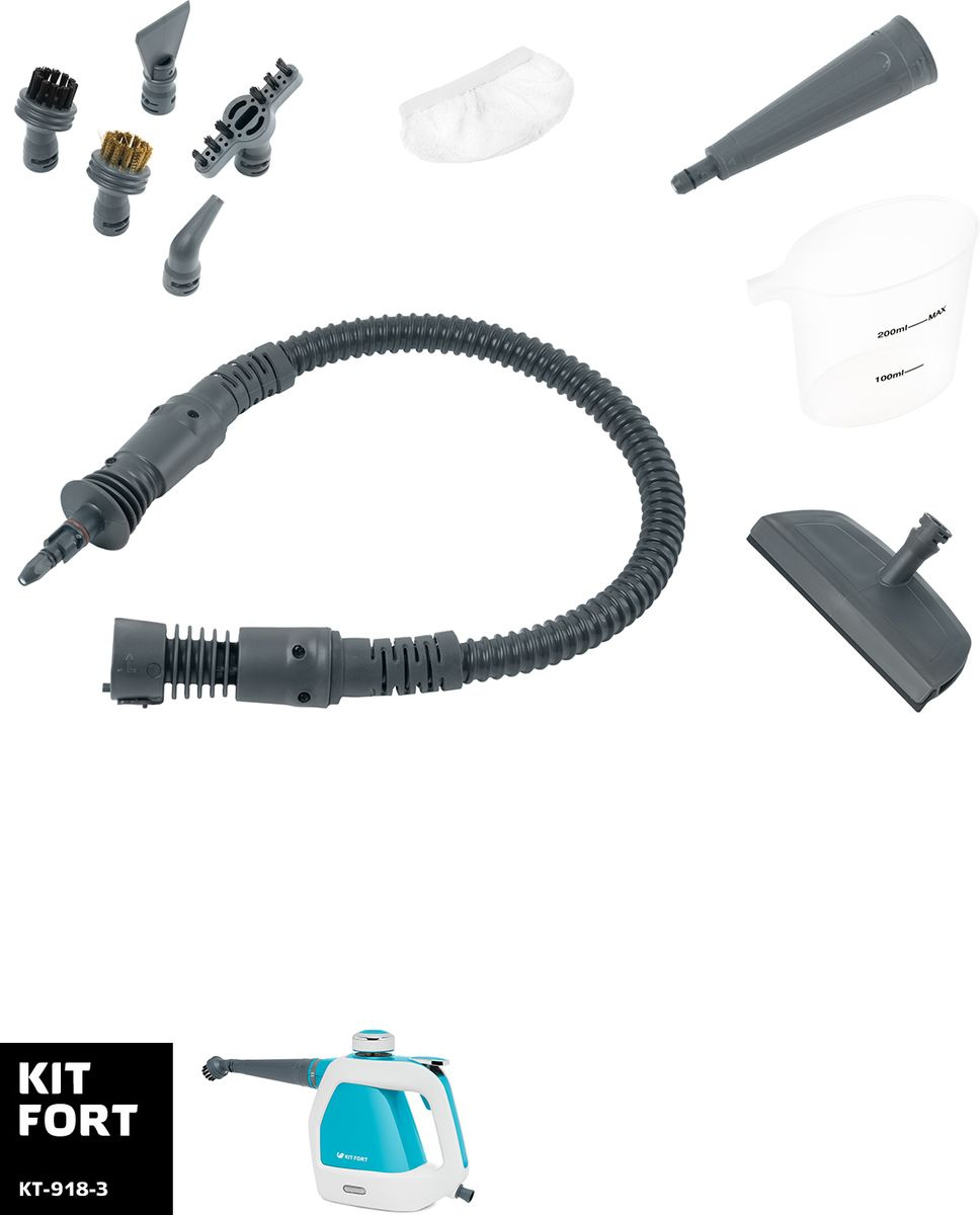 - Комплектация: Пароочиститель, съемный паровой шланг, струйная насадка, насадка для отпаривания, тряпка для отпаривания, круглая латунная щётка, угловая насадка, круглая ворсовая щётка, скребок, плоская ворсовая щётка, стакан для воды, инструкция