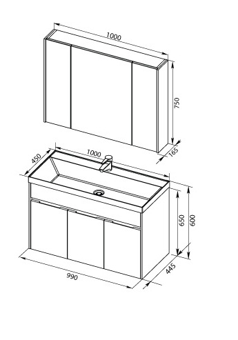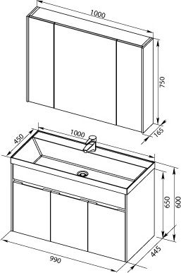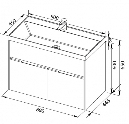 Высота изделия в сантиметрах. Если тумба предусматривает в комплекте наличие ножек, то высота изделия определяется вместе с ними. Этот габарит указан для изделия в минимальной комплектации (без раковины или с раковиной), если иного не указано в дополнительной информации.