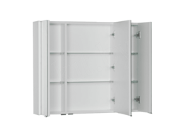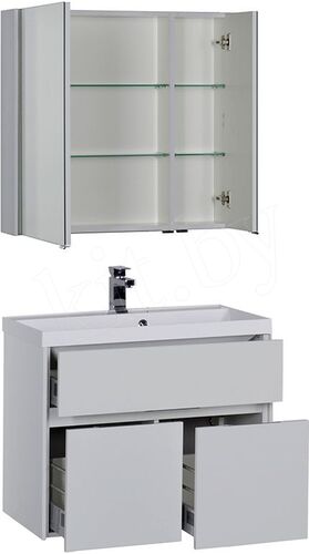• с открытыми полками: могут дополнять конструкцию тумб с выдвижными ящиками или распашными дверками. Открытые полки могут использоваться как для хранения необходимых ванных принадлежностей, так и для декоративного оформления помещения с помощью дизайнерских аксессуаров;