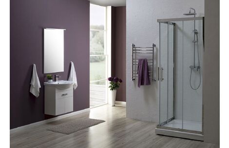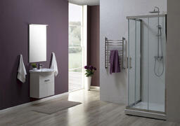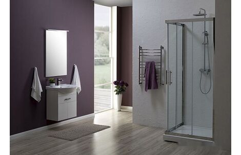 Стекло. Стеклянный корпус может быть изготовлен из прозрачного или матового стекла. Это наиболее водостойкий материал, так как ни пар, ни большое количество воды не могут его повредить. Мебель из стекла очень гигиенична, за ней легко ухаживать и поддерживать в чистоте. Недостаток: сильный удар может ее повредить.
