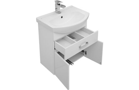 • тумба с раковиной: предполагает использование данного типа мебели вместе с керамической чашей. Большинство тумб, представленных на нашем сайте, имеет два варианта комплектации на выбор – с раковиной или без нее. Однако некоторые модели реализуются исключительно с раковиной;