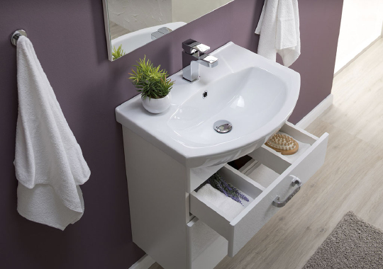 Подвесные тумбы монтируются к стене на необходимом расстоянии от пола. Позволяют сэкономить пространство в нижней части помещения, а отсутствие контакта с водой гарантирует их долгую службу.