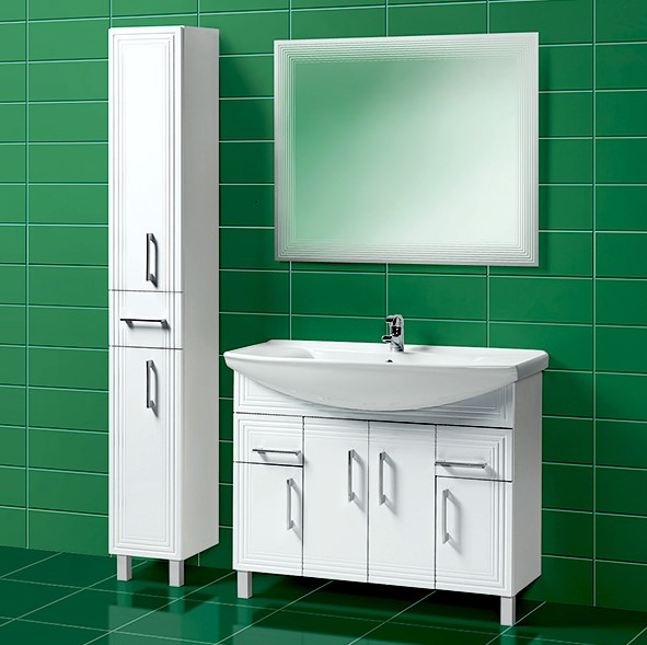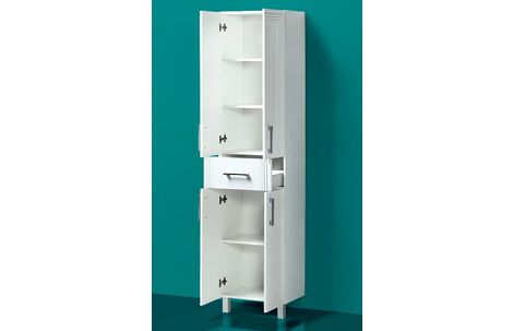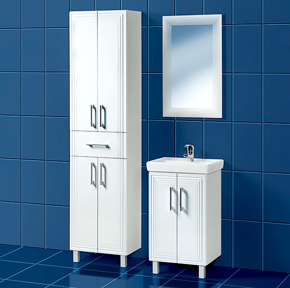 • шкаф-пенал: чаще всего имеет узкую и длинную форму, что позволяет устанавливать его даже в небольших помещениях. Компактность этого типа мебели прекрасно сочетается с высокой функциональностью. Шкаф-пенал отлично подходит для хранения полотенец, косметики и других необходимых ванных принадлежностей. Этот тип мебели может устанавливаться на пол или крепиться к стене;