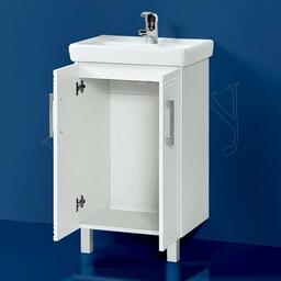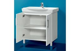 Напольные тумбы могут устанавливаться непосредственно на пол, а могут иметь хромированные ножки. Наличие ножек защищает изделие от попадания влаги на дно изделия.